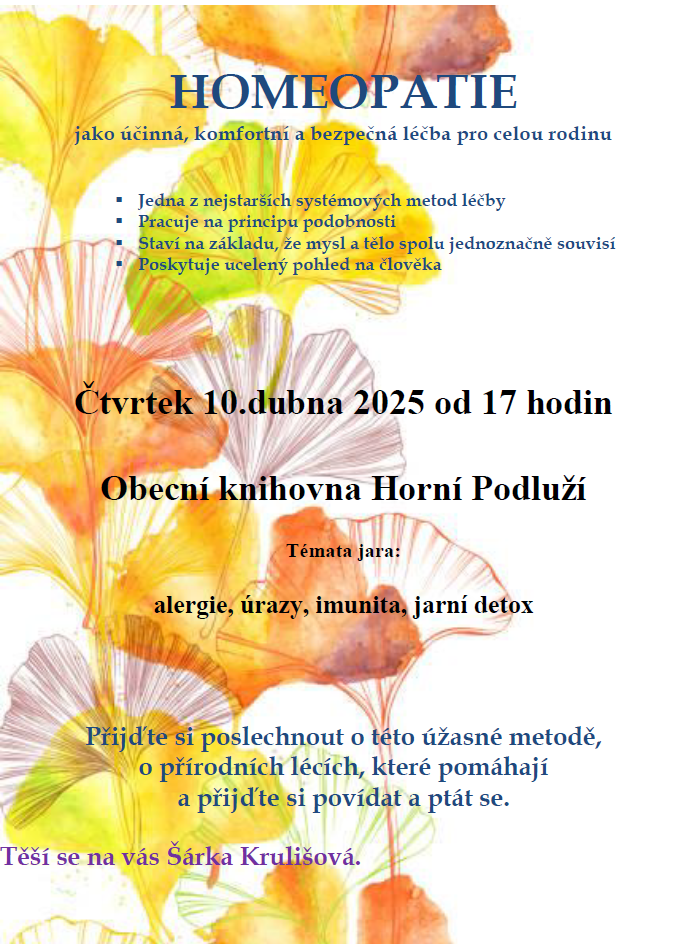 Úvod > O obci > Kalendář akcí > Homeopatie jako účinná léčba pro celou rodinu